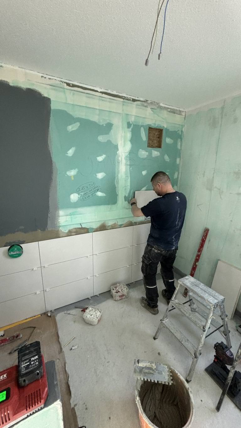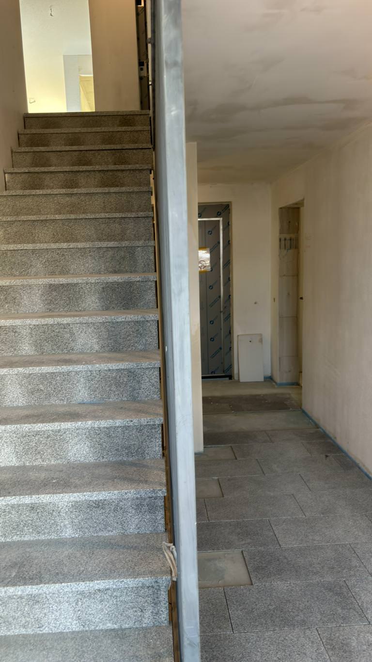 Die Ausbauarbeiten sind in vollem Gange. Die Fliesenarbeiten gehen so langsam aber sicher dem Ende zu. Die Maler sind auch schon sehr weit gekommen. Und der Treppenhausbelag ist fertig.