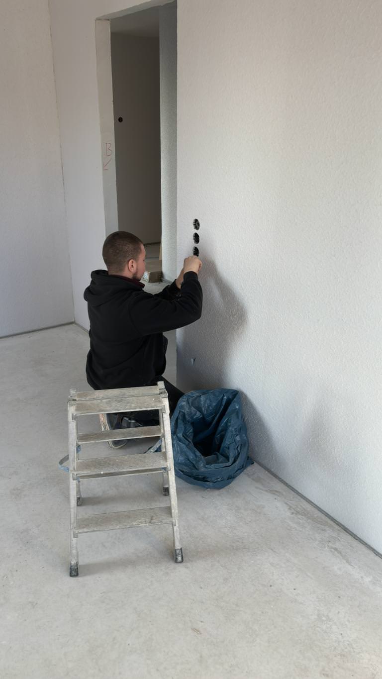 Zwischenzeitlich ist es im Technikraum so richtig eng geworden. Die Installation im UG ist weit vorangeschritten. Währenddessen arbeitet die Fa. MS Stuckateur am Innenputz in den Wohnungen. Bereits Anfang November wird die Fußbodenheizung verlegt.